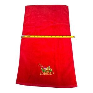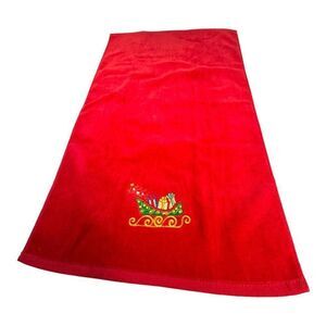 Red Embroidered Vintage Christmas Sleigh Toys Kitchen Bath Holiday Hand Towel