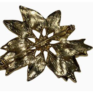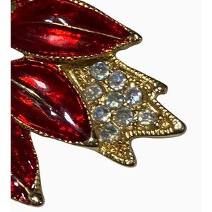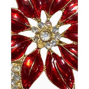 Red Enamel Crystal Flower Brooch Gold Tone vintage