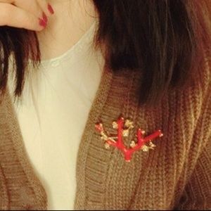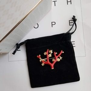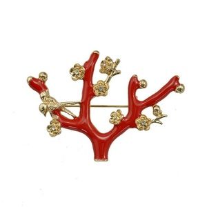 Red Enamel Plum Blossom Tree Brooch Pin $29