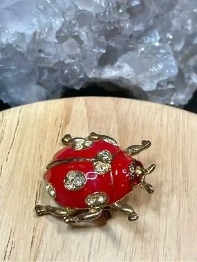 🌑 Red Enamel Rhinestone Ladybug Insect Brooch 🌑