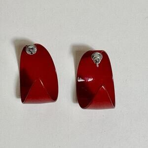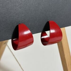 Bright Red Enamel Vintage Hoop Earrings, 1980s Pierced Studs