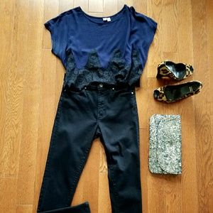 Solar - Black High Waisted Skinny Jeans size 30. Perfect paired with a crop top and wedges. Dress it up or wear them casually. The jeans are versatile, and comfortable. Made in the U.S.A. 14% Cotton 42% Lyocell 12 % PES 2% Elastic