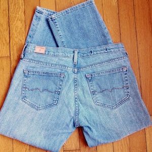 Red Engine cropped jeans, medium light blue,size 29", inseam 25", falls under knees.