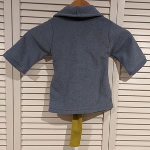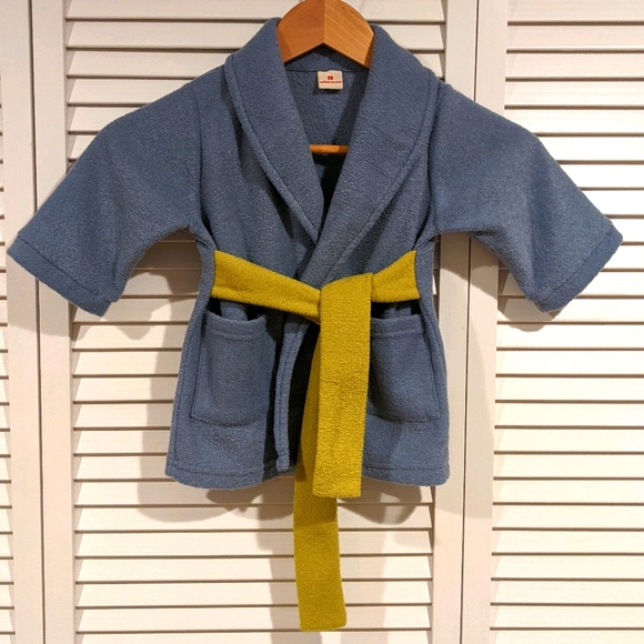 Adorable and high-quality plush baby robe. 6-12 Months. Blue with pockets and lime green belt.