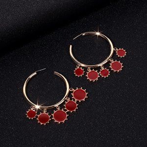 Red Exotics Circles Drop Hoop Earrings