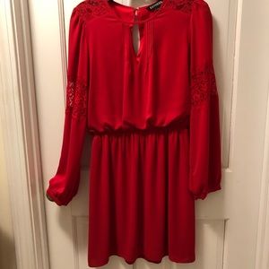 Long sleeved red dress from Express. Size small. Falls about mid thigh. Lace detail on chest and sleeves. The perfect holiday dress! Worn twice.
