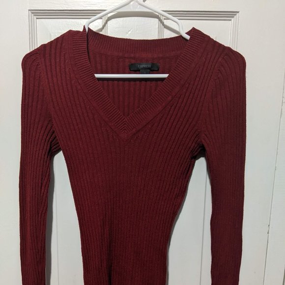 Express brand v-neck red form-fitting sweater. Great condition, no tears or snags. Size small
