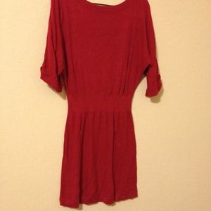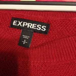 Red express sweater dress. Sits right above your knee. Blank leggings boots and a belt go perfect with this dress. Fitting and flattering