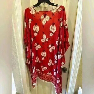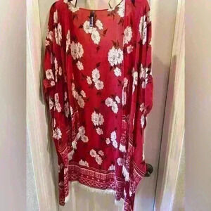 Red Express kimono. Size Medium. Worn once. White flowers on red.
