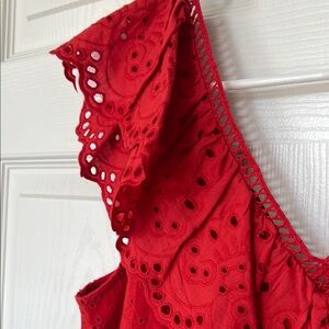 Red Eyelet Ruffle Top