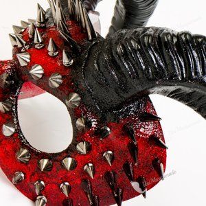 Red Face Steampunk Demon Silver Spikes with Black Horns Halloween Masquerade