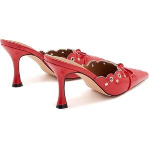 Red Fashion Pointed Toe Women Heels Eyelet Detail Slip On High Heel Mules