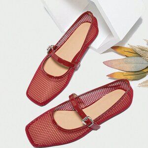 Red Fashionable Women's Ballet Flats Spring Square Toe Flat Shoes