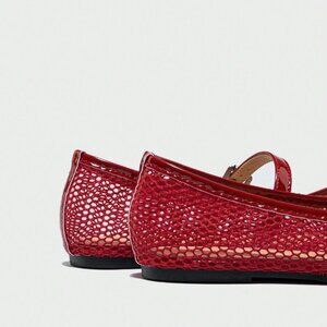 Red Fashionable Women's Ballet Flats Spring Square Toe Flat Shoes