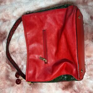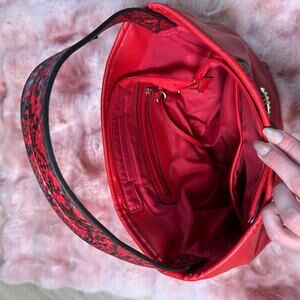 Red Faux Leather Bee & Cherry Embellished Hobo Shoulder Bag -Excellent Condition