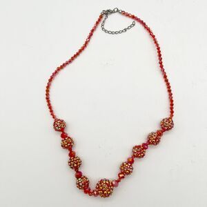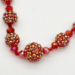 Red Fireball Resin Studded Graduated Luminescent Chunky Beaded Necklace 20”