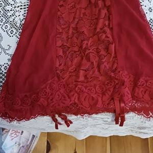 Stunning red fitted slip. This slip has a built in bra to perk up the girls. The fitted style of this slip is slimming and helps hide imperfections. This piece will put a smile on your partners face. Perfect for any special occasion or just because.