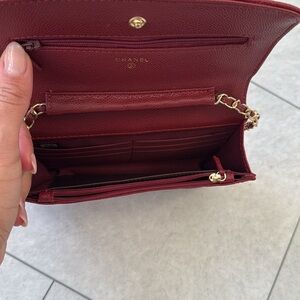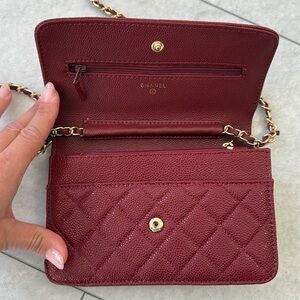 Red pebbled leather wallet bag with gold detailing- inspired and beautiful