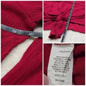 Red Flare Sleeve Crop Top ✦ Windsor Tie-Front Textured Boho Style ✦ Made in USA