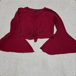 Style: Crop top ✦ tie-front ✦ long flare sleeves