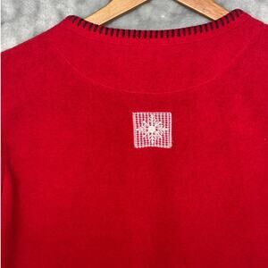Red Fleece Christmas Cats Holiday Festive Long Sleeve Top Women Small