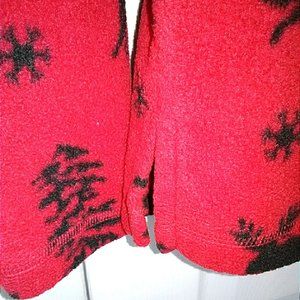 Red Fleece Jacket with Black Reindeer and Trees Small