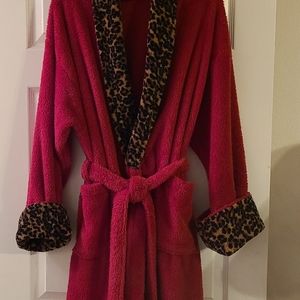 TJ Lawford Bath Robe; Red Cheetah Print; Plush, Soft, and Warm