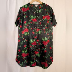 Red Floral Babydoll Sheer Adjustable Strap Slip Nineteen Sexy Sleep Dress Medium