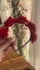 Elegant red floral headband with a black band. Perfect for adding a pop of color to any outfit.