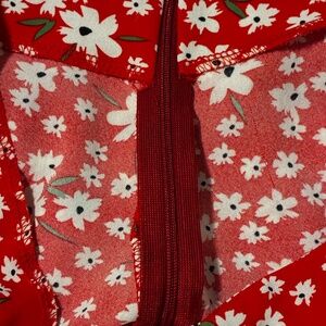 Red mini skirt with cute cartoon flower pattern, size small. Bought at TJ Maxx but no brand tag in back. Only worn once or twice.
