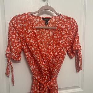 Red Floral New Look Faux Wrap Dress Belted Size 2 Spring