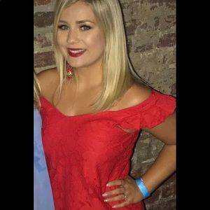 Beautiful top with gorgeous floral detail can we worn slightly off the shoulders as shown in picture. Size small