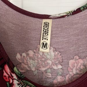 Red floral racerback dress. Perfect for summer, nice and flowy and stretchy. Thin material. Little too small for me up top now, would recommend a B cup or smaller.