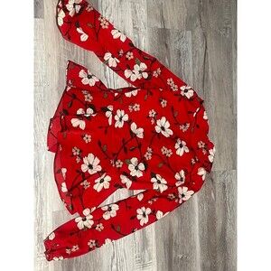 Red Floral Wrap Cross over Blouse Top Long sleeve Boho Chic dress shirt size S