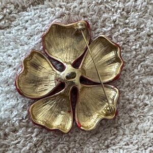 Red Flower Brooch with Rhinestones