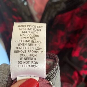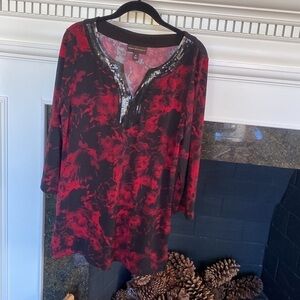 Red Flower Patterned Tunic Top Black Sequined Collar 22” P2P 30” L Size Medium