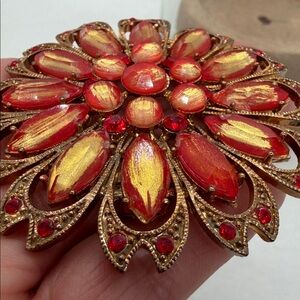 Vintage like -Sun Glory Red Flower Rhinestone Wheel MANDALA Pendant Brooch