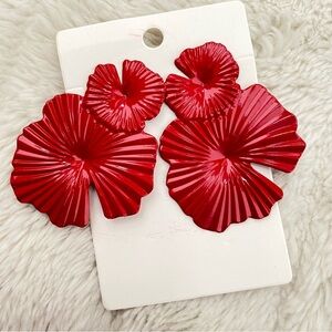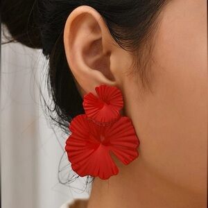 Make a bold statement with these vibrant red floral earrings. Perfect for adding a pop of color to any outfit.