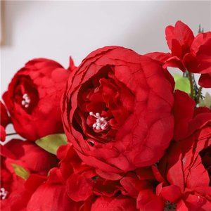 Red Flowers Artificial Silk Peony Bouquets Wedding Home Decoration Red Floral