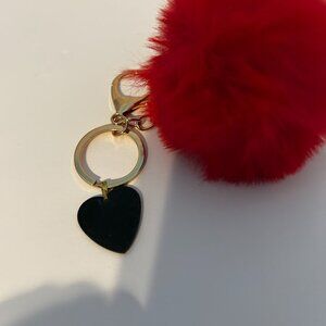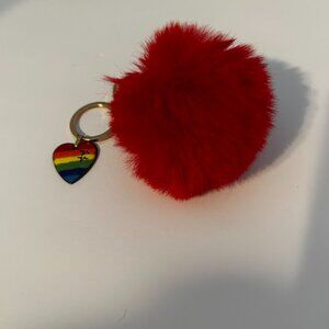 Red Fluffy Pom Pom Purse Charm Keychain w/ Rainbow Heart Pendant