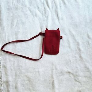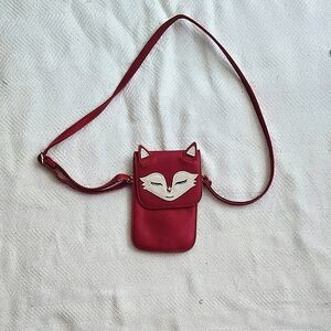 Red crossbody bag with a cute fox design. Two Pockets and two ears! long adjustable strap and button closure.