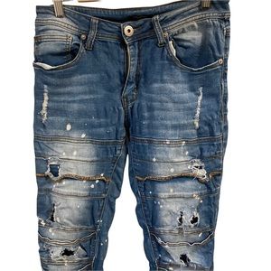 Red Fox Jr 7 Skinny Distressed Splatter Paint Jeans