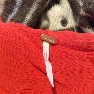 Red Free People Peplum Surplice Shirt Large L Long Sleeve