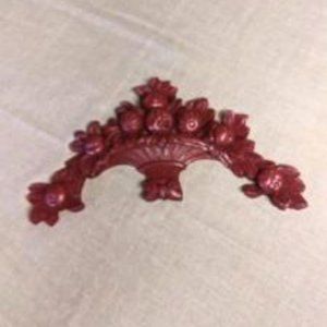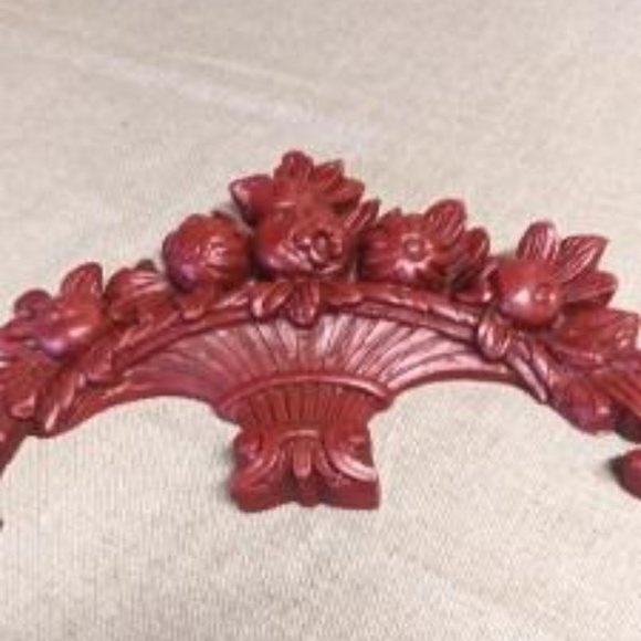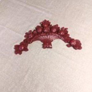 This red fruit wall plaque is made of a polyresin material. It is 16"w X 8"h X 5"d. The wall plaque is great for hanging over a