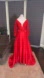 Red Full Length 3/4 Sleeve Sparkly Bodice Formal Prom Dress LegSlit Size 4 *READ