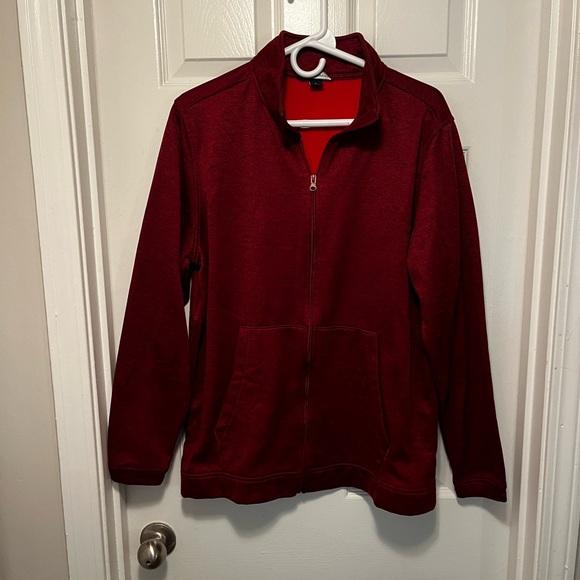 Stylish red full-zip jacket with front pockets. Perfect for casual wear. Lightly worn, great condition.