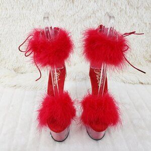 Red Furry Marabou Feather 7" High Heel Platform Shoe