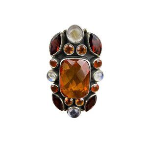 Red Garnet Amber Moonstone Silver Statement Ring India Handmade Boho Style Sz 6