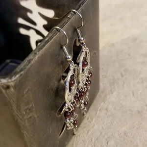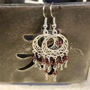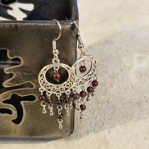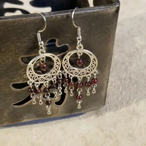 Handcrafted Natural Red Garnet Gemstone Antique Silver Chandelier Earrings