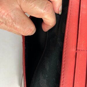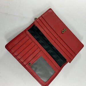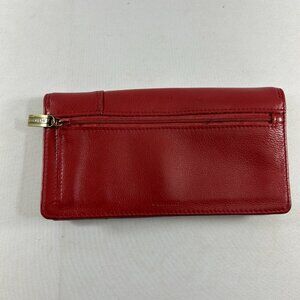 Red Genuine Leather Dockers Wallet Womens Bifold Pockets Coin in preowned condition with light signs of wear. Measures 7.25" X 4".